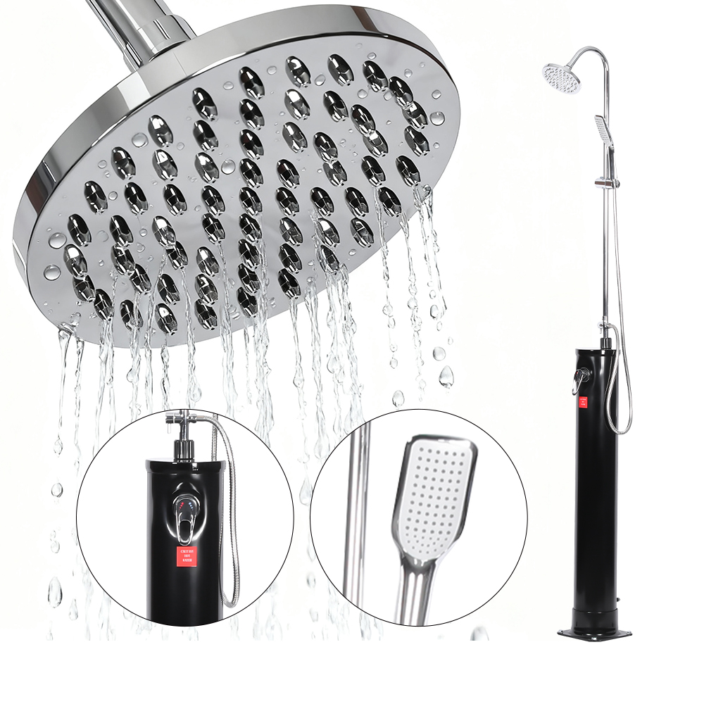 LY18L04 18L swimmingpoolhavestrand udendørspool solbruser med firkantet hånd har et modulært design, der giver mulighed for nem adskillelse, hvilket gør den praktisk at transportere og opbevare kompakt, når den ikke er i brug. Den er udstyret med et fleksibelt brusehoved i regnskovsstil, der lader dig justere vandstrømmen efter dine personlige præferencer, hvilket giver en blid og beroligende strøm, der tæt efterligner følelsen af at stå under et naturligt vandfald, hvilket forbedrer den samlede bruseoplevelse. Denne solbruser er meget fleksibel i design og er velegnet til en bred vifte af miljøer, herunder strande, pools, feriehuse, hoteller og bungalows, hvilket sikrer en forfriskende og behagelig bruseoplevelse, uanset hvor den er installeret.