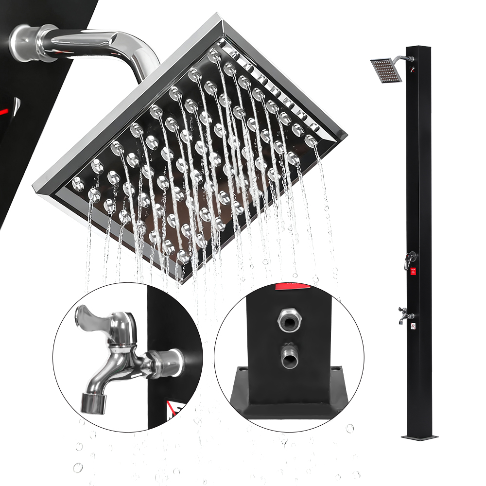 Denne LY18L08-SS justerbare integrerede UV-bestandige solbruser er gennemtænkt designet til både komfort og praktisk. Dens generøst størrelse regnbruserhoved, udstyret med et integreret kugleled, kan dreje op til 180°, så du kan justere vinklen for en fornøjelig og forfriskende bruseoplevelse. Enheden er fremstillet af UV-bestandig plast og er holdbar og kan hurtigt adskilles for nem transport eller opbevaring, når den ikke er i brug. Den robuste base, lavet af rustfrit stål, ABS, kobber og andre pålidelige materialer, sikrer en sikker og stabil opsætning selv på forskellige udendørs overflader. Det er nemt at bruge bruseren – bare fyld bruserøret med en almindelig haveslange, lad solen naturligt opvarme vandet, og brug derefter den integrerede vandhane til at justere temperaturen efter dine præferencer, hvilket skaber en bekvem og behagelig udendørs bruseoplevelse.
