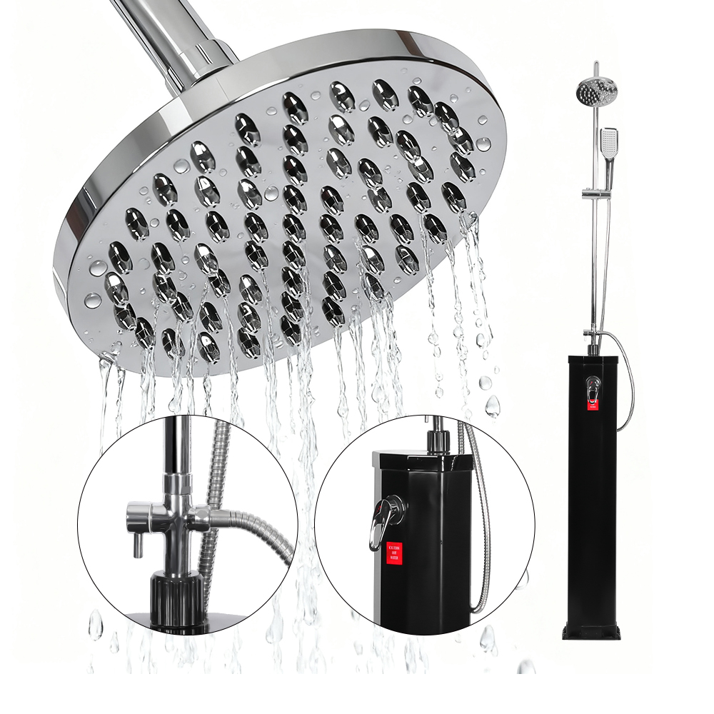 Denne LY18L09-B 18L pvc solbruser ved poolen med mobil hovedbruser i rustfrit stål er designet til at bringe komfort og afslapning til en række udendørs omgivelser, hvad enten det er i haven, ved poolen eller på campingture, og tilbyder en moderne løsning til at nyde varmt vand uden behov for eksterne energikilder. Den har et overdimensioneret regnbruserhoved med et indbygget kugleled, der giver mulighed for nem justering op til 180°, hvilket sikrer fleksibilitet i brug og gør opsætningen enkel. Det fleksible brusehoved i regnskovsstil forbedrer oplevelsen ved at lade dig nemt styre vandstrømmen, hvilket skaber en beroligende, spa-lignende fornemmelse, der ligner at stå under et naturligt vandfald. Sammen giver disse funktioner en forfriskende og tilpasselig bruseoplevelse, hvilket gør den ideel til alle, der søger både praktisk og afslapning udendørs.