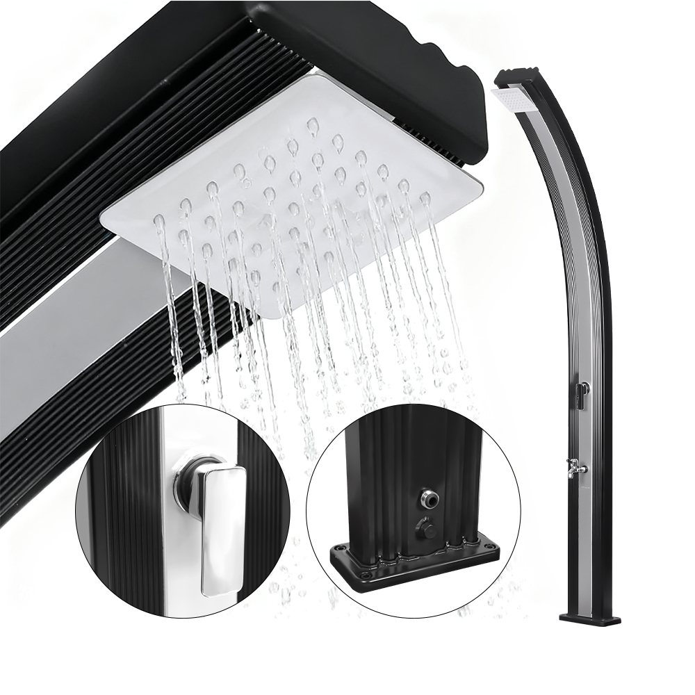 Denne LY30L01 aluminiumsbøjede solbruser til udendørs swimmingpool har et 30-liters bruserør i aluminium, der giver rigeligt med vand til en behagelig og behagelig bruseoplevelse, uanset om den er i haven, ved poolen eller andre steder. Etgrebs blandingsbatteriet giver mulighed for hurtig og nem justering af vandtemperaturen, så du nemt kan indstille den ideelle temperatur efter din smag, hvilket forbedrer den samlede brugeroplevelse. Aluminium bruserøret giver ikke kun rigelig kapacitet, men tilbyder også fremragende holdbarhed og termisk ledningsevne, hvilket gør LY30L01 aluminium bukket udendørs swimmingpool solbruser mere effektivt og bekvemt.