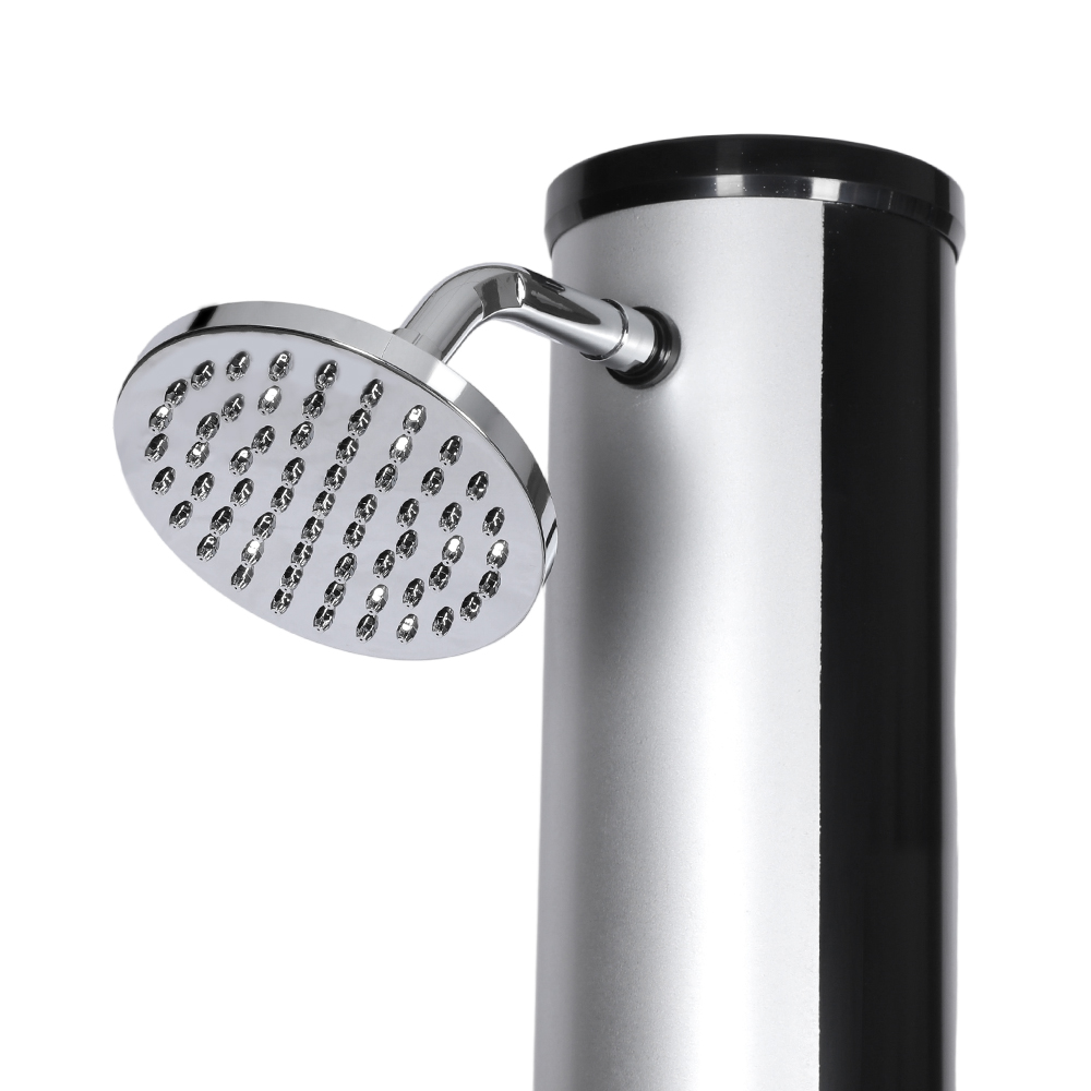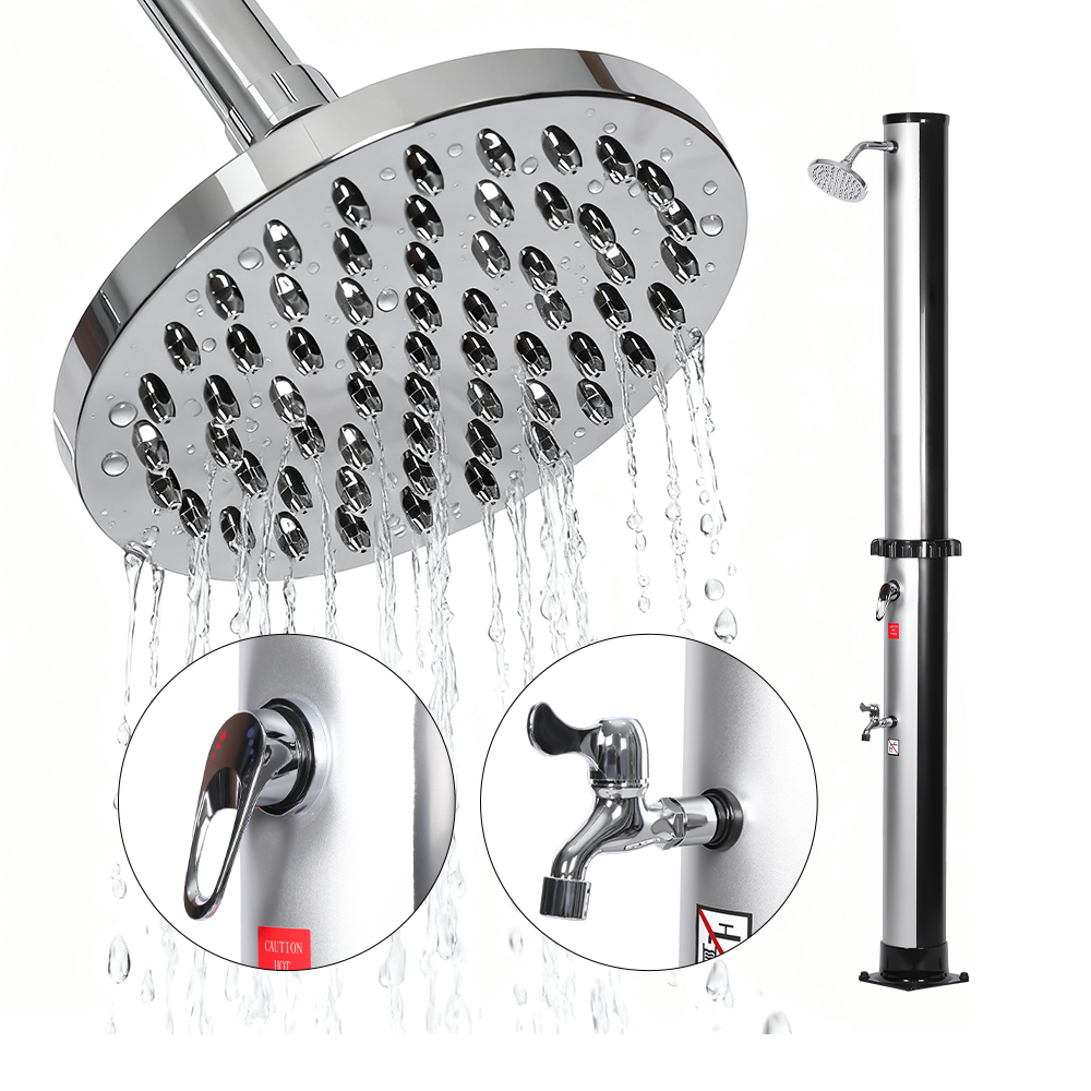 Denne LY35L02-CR justerbare og vandtætte solbruser kombinerer praktisk med komfort, og den har et stort bruserør, der varmer op til omkring 60°C ved kun at bruge sollys, hvilket eliminerer behovet for elektricitet. Du skal blot sætte en almindelig haveslange på for at fylde bruserøret, hvilket gør det nemt for hele familien at nyde en forfriskende udendørs bruser i haven, ved poolen eller på camping. En praktisk metalbakke holder badeartikler såsom sæbe eller shampoo inden for rækkevidde, mens en gennemtænkt designet afløbskanal i bunden forhindrer vand i at samle sig, hvilket holder området rent og sikkert. For at tilføje komforten giver det justerbare brusehoved mulighed for fleksibel vandstrålekontrol, så du kan skræddersy flowet til dine personlige præferencer. Dens spray i regnskovsstil giver en beroligende bruseoplevelse med naturlig følelse, der forvandler hver skylning til et øjebliks afslapning.