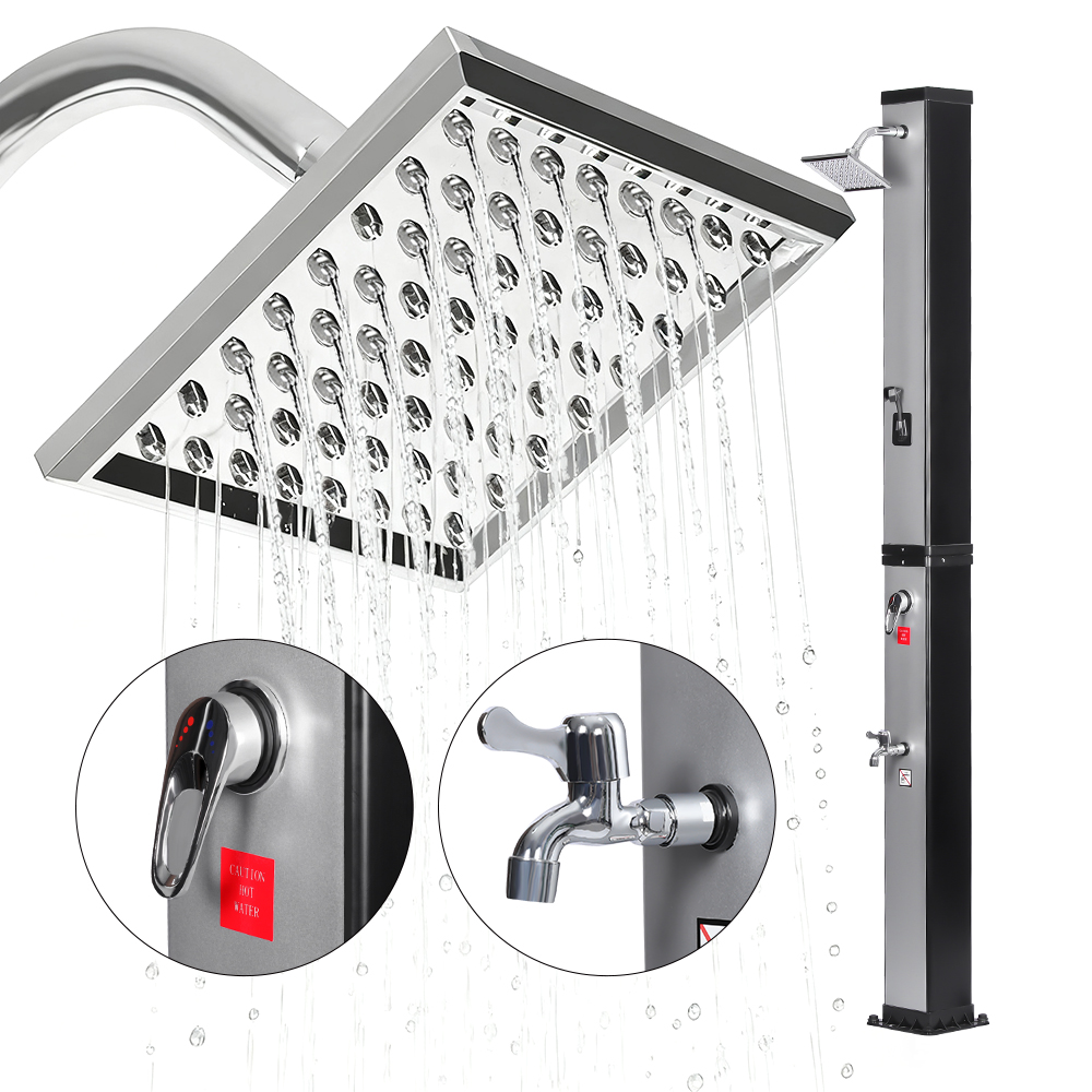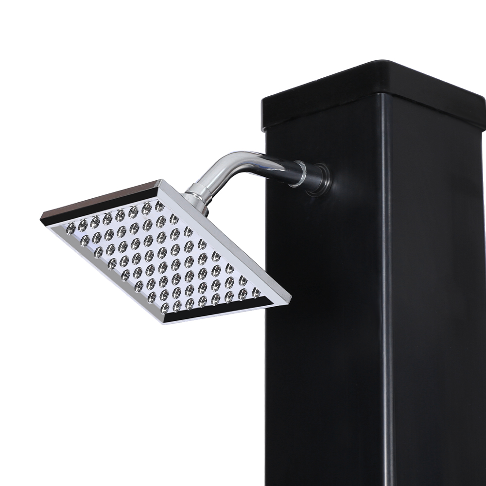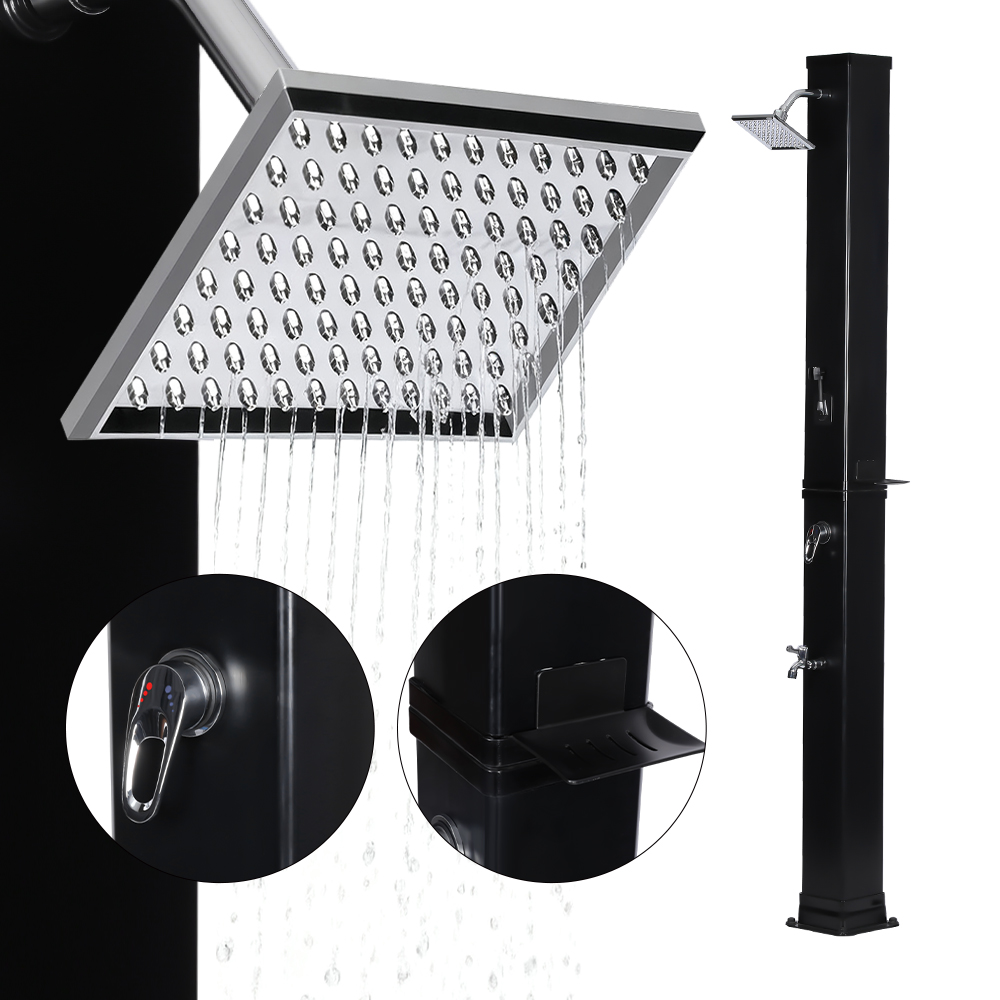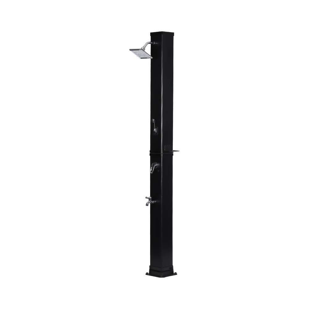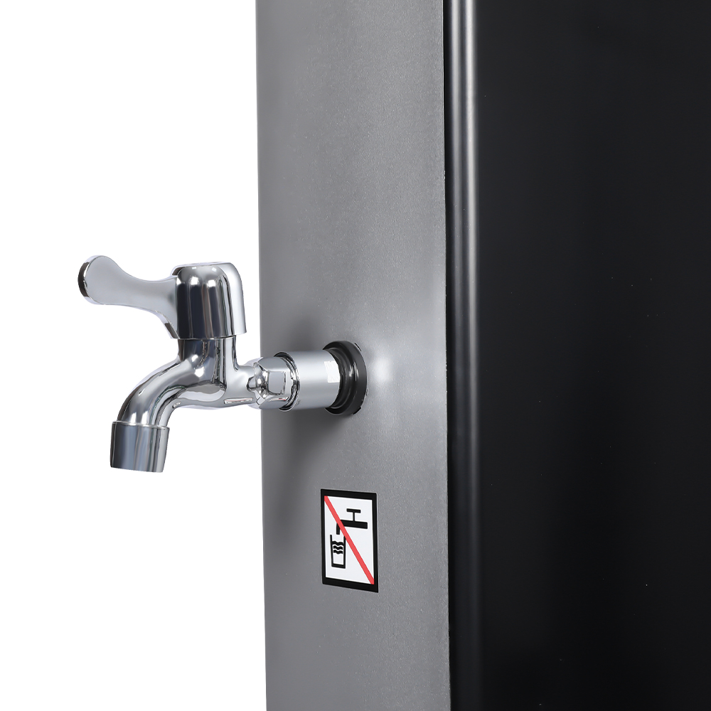 Denne LY35L07 multifunktionelle solbruser med stor kapacitet bruger kun sollys til at varme vand op til 60°C, hvilket giver en energibesparende og miljøvenlig måde at nyde udendørs badning på. Det er nemt at fylde det – tilslut blot en standard haveslange til indløbet, og bruserøret bliver hurtigt klar til brug. En indbygget metalhylde tilbyder et praktisk sted til opbevaring af showergel og andre væsentlige ting, mens drænhuller i bunden sikrer, at vandet flyder effektivt væk og holder området tørt og ryddeligt. Designet med alsidighed i tankerne, denne solbruser er perfekt til forskellige omgivelser, hvad enten det er på stranden, ved poolen, i et sommerhus, hotel eller bungalow. Dens fleksible struktur gør det muligt at tilpasse sig forskellige miljøer.